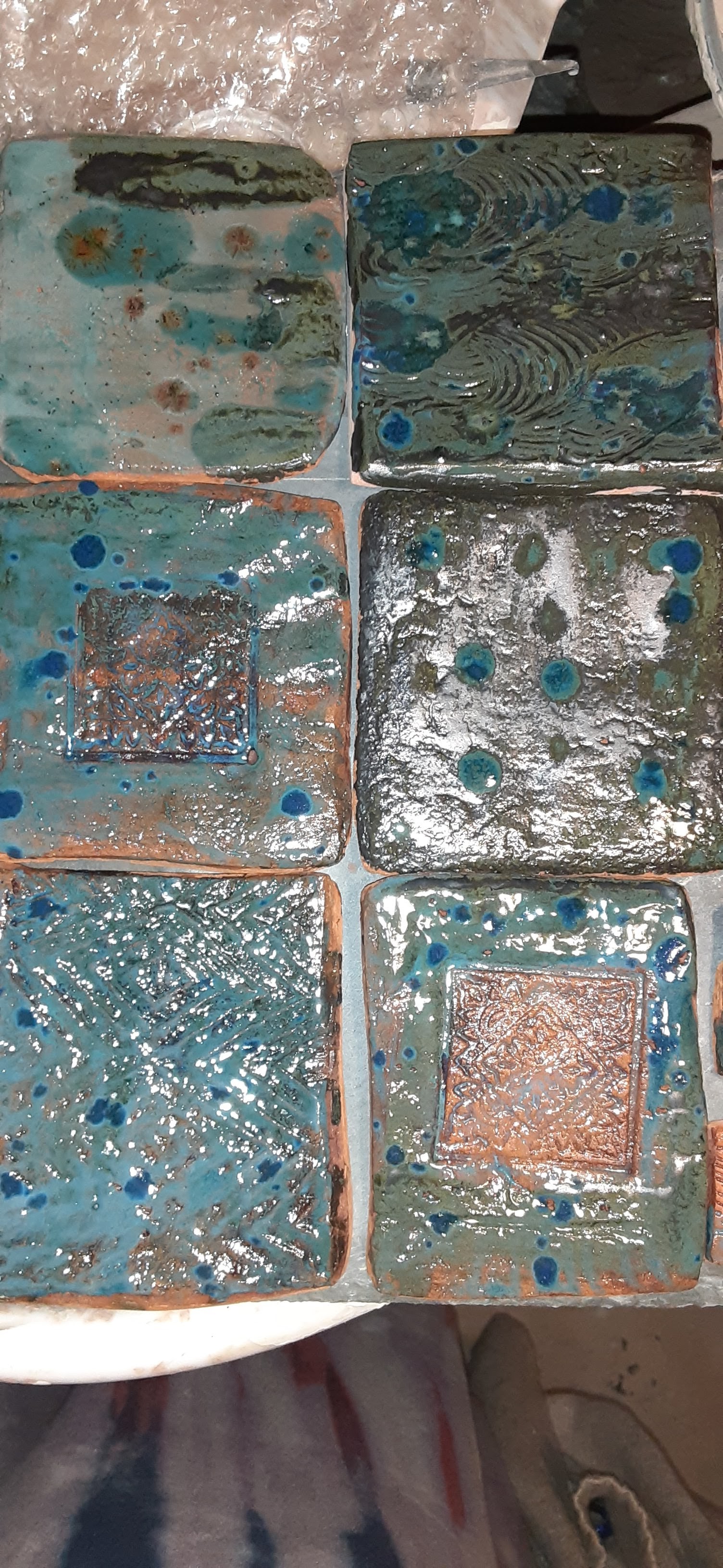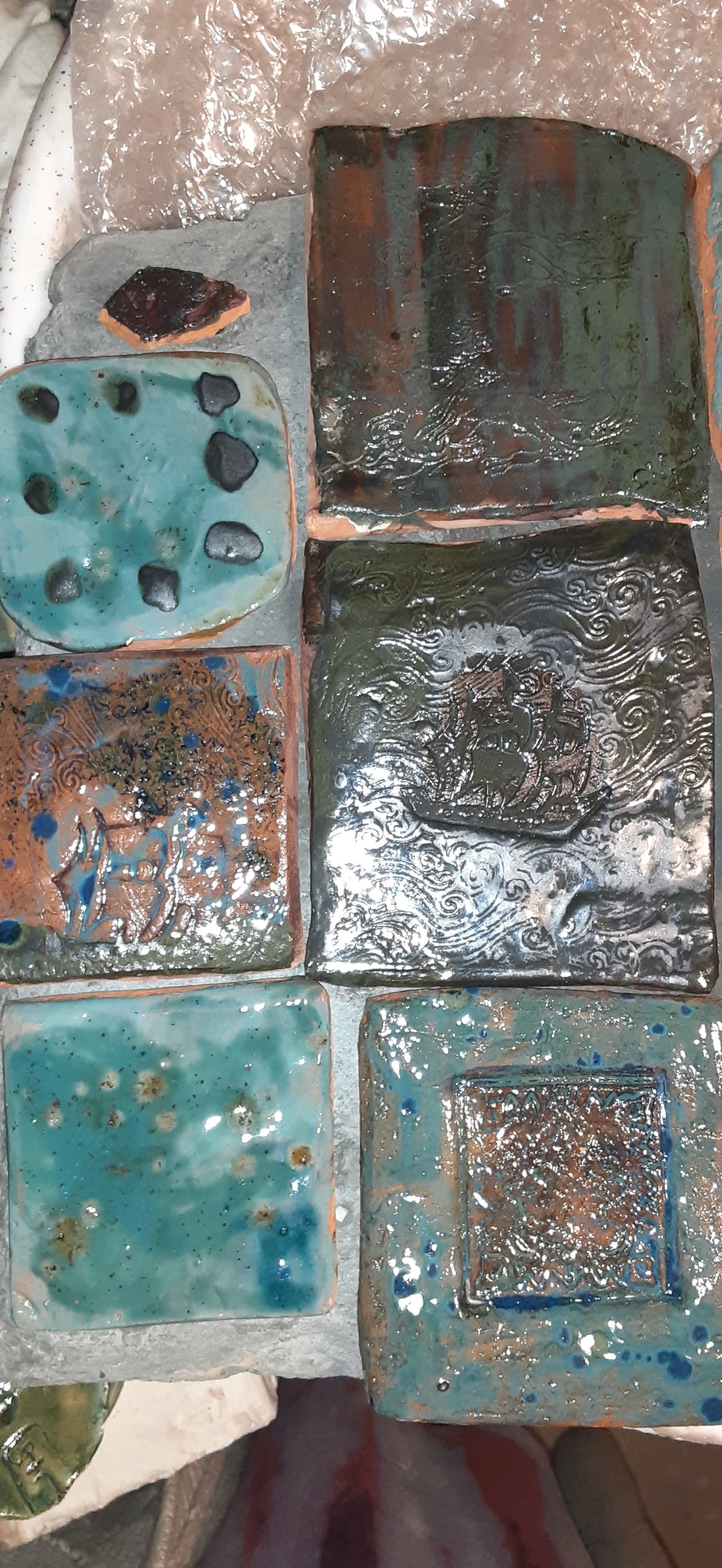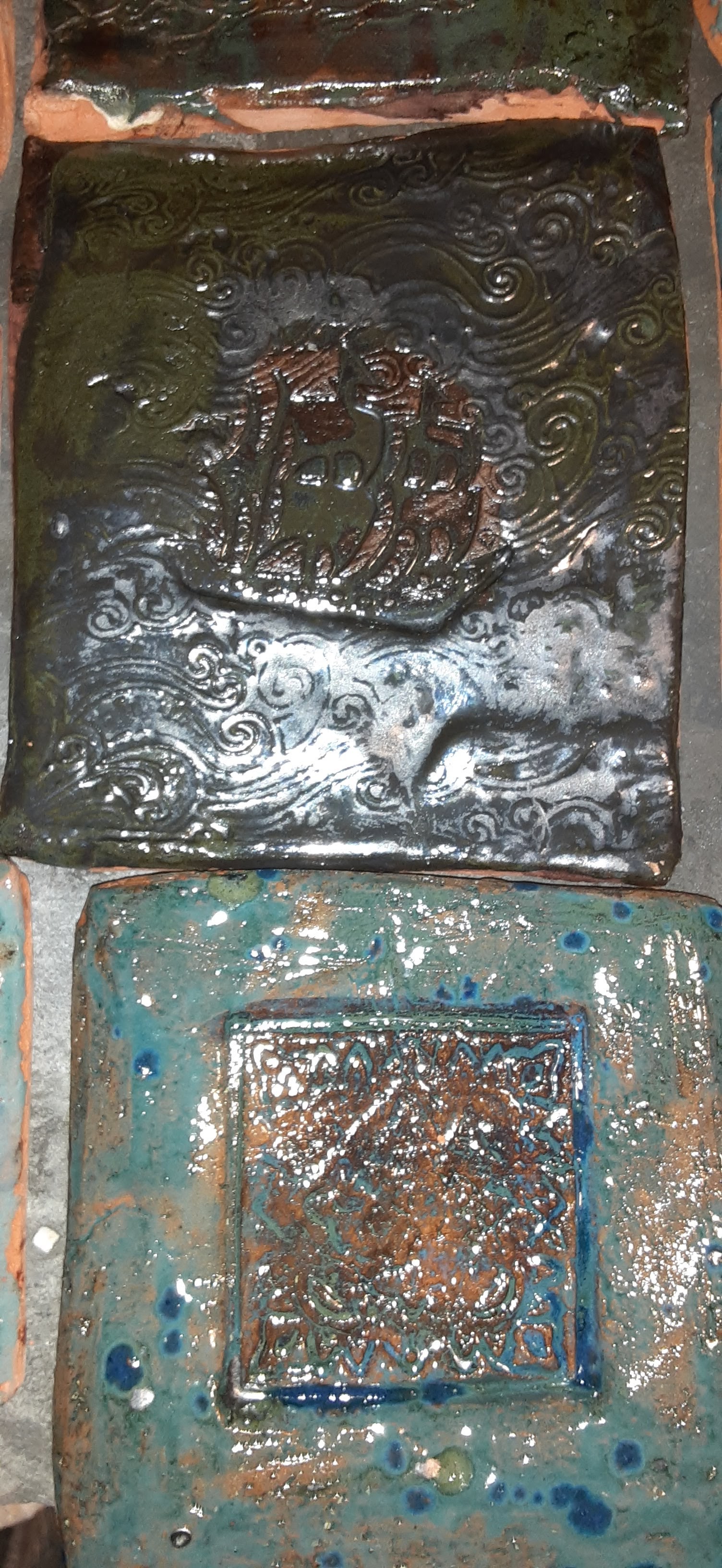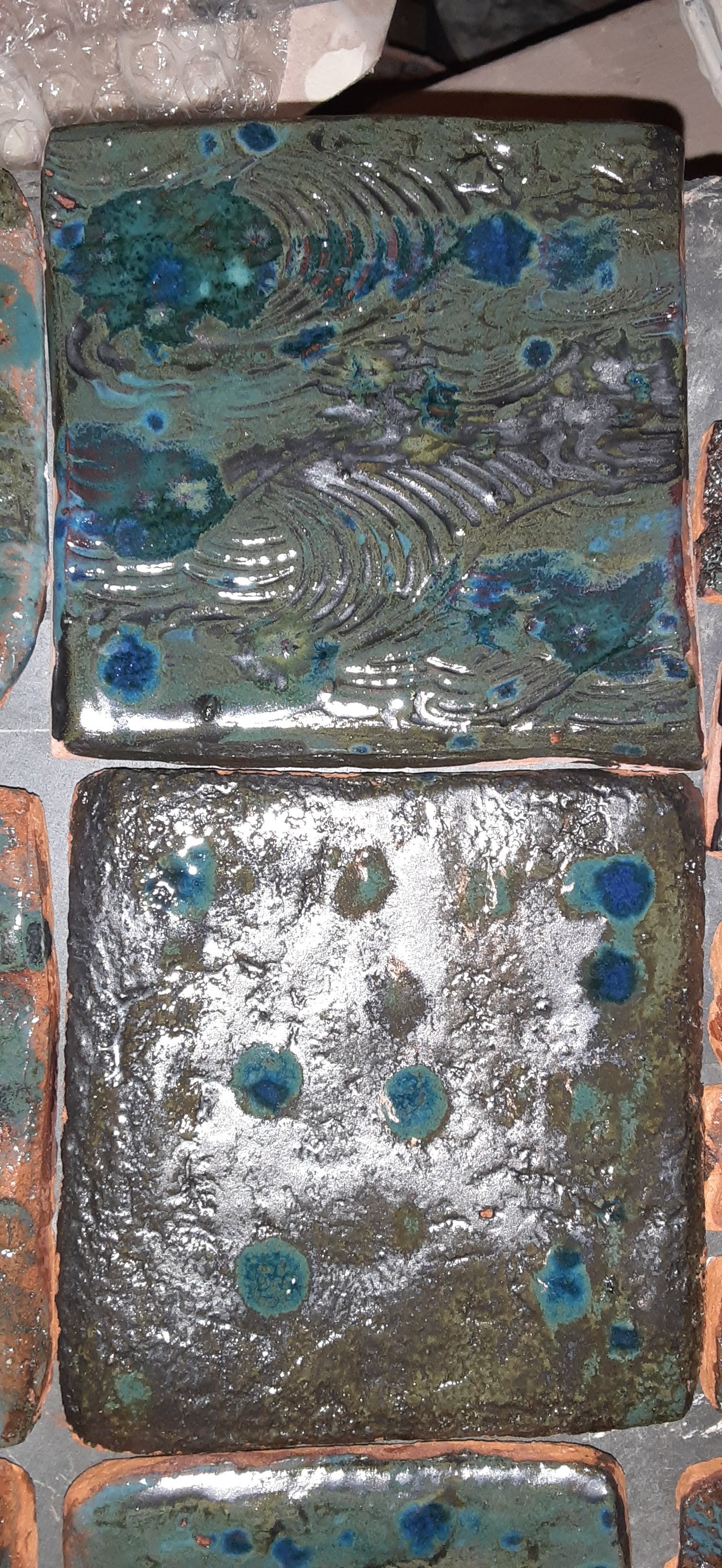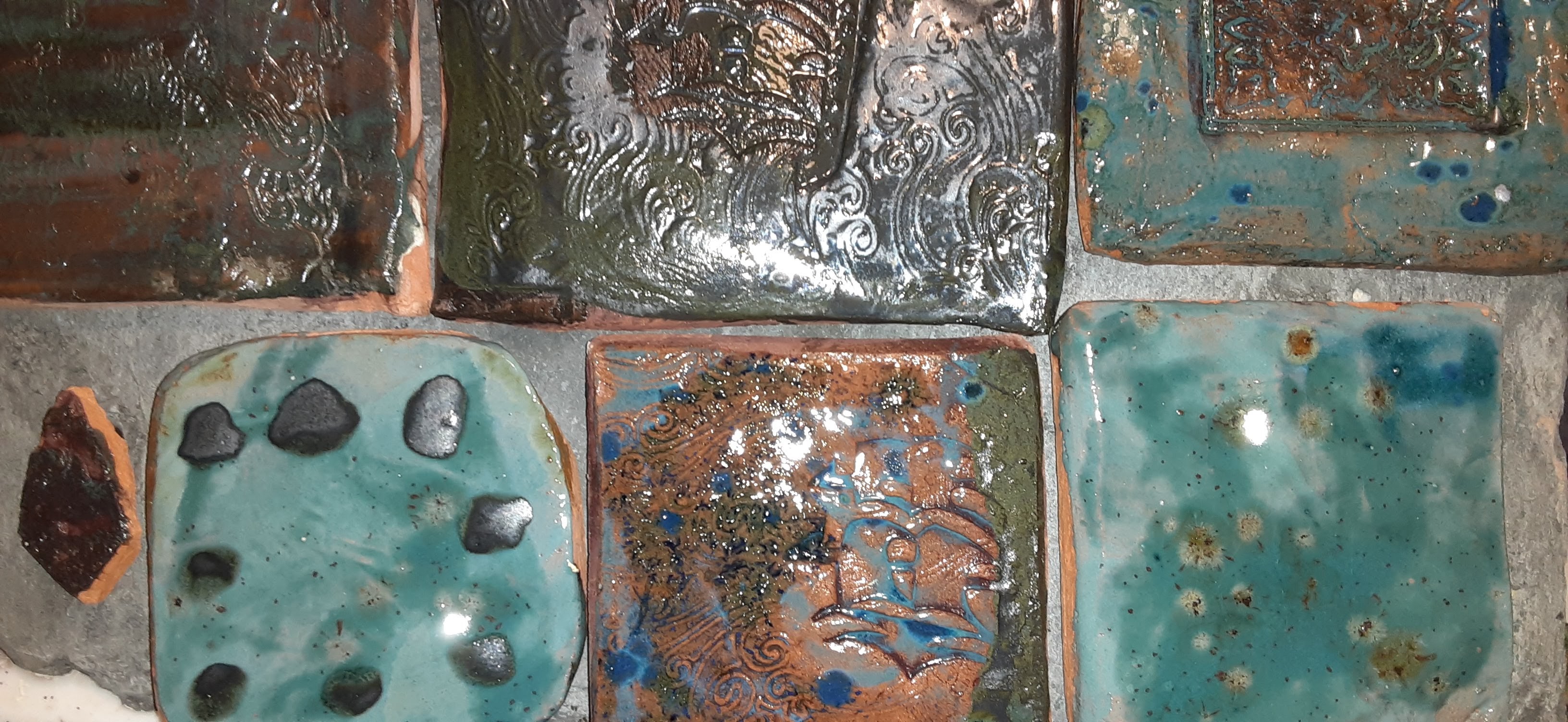 Here the tiles are all unique like a patchwork quilt using metal glazes. We can make anything now and personalize any space. Contact us for more details. Below are some of the makers and shakers who made it all possible