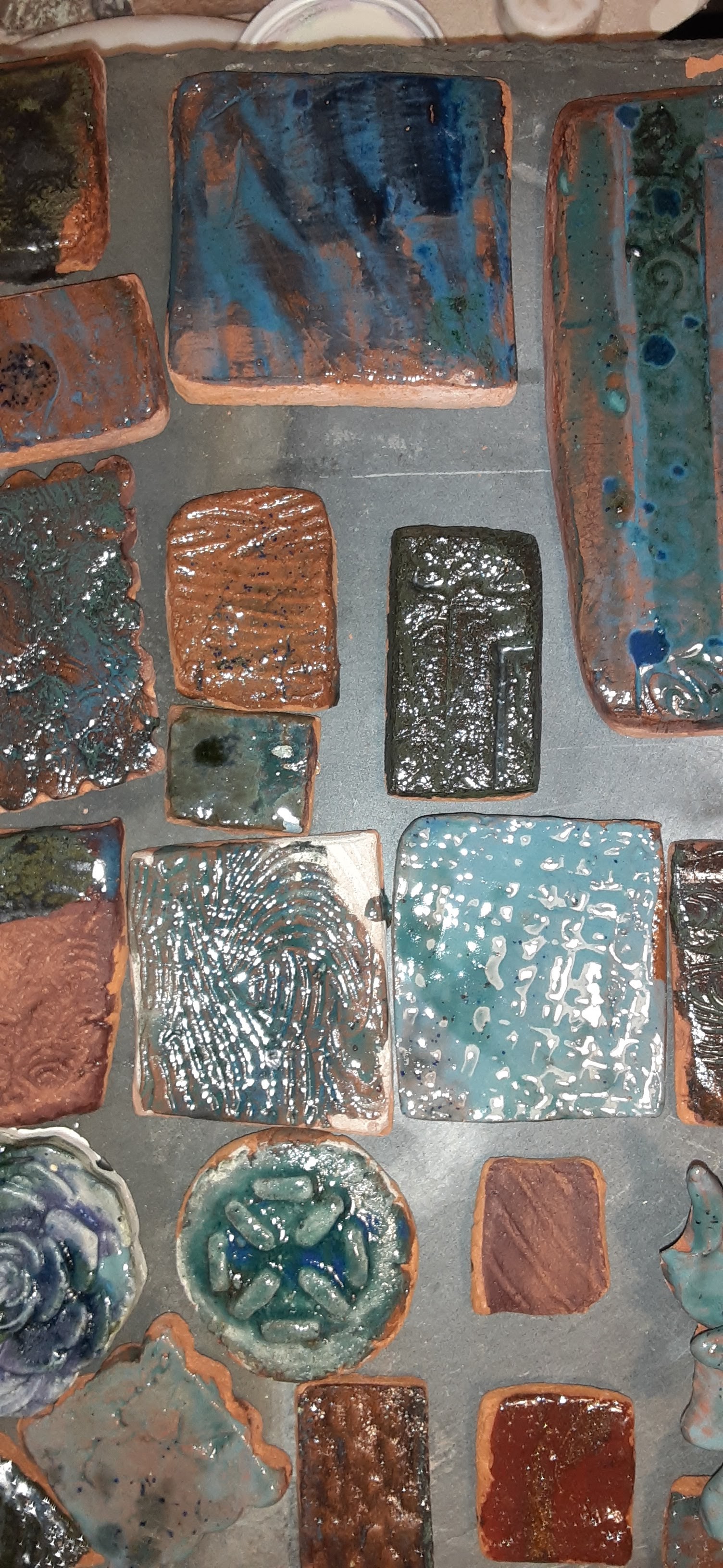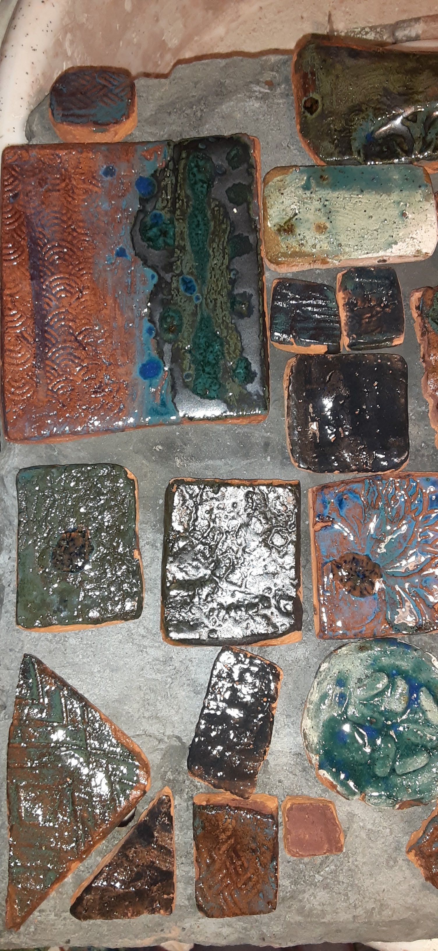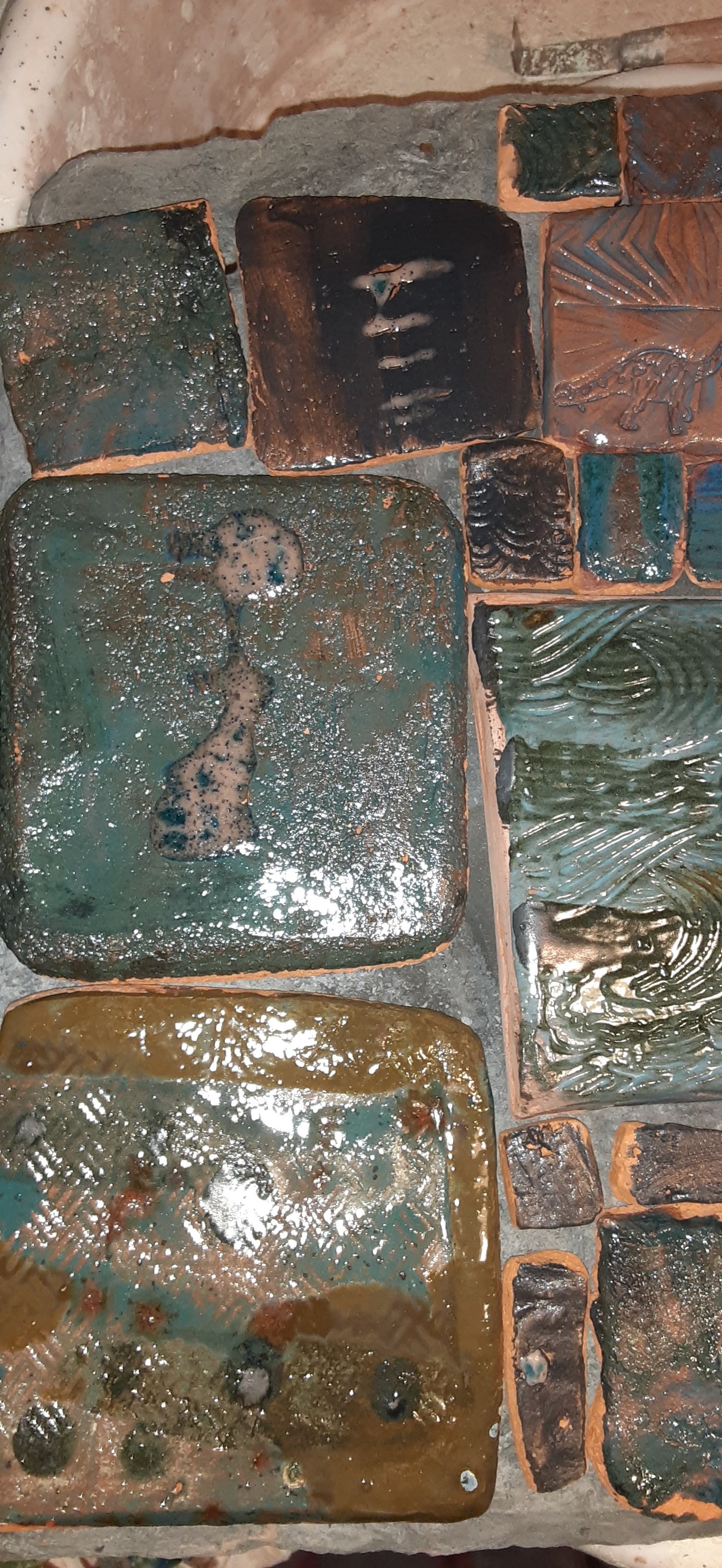 Sometimes the best projects take lots of hands, a lifetime of learning and unlimited amounts of energy. This tile project was developed from a summer of processing the clay from the house I grew up in on the land I gardened in on the space that was about to hold the pool. A dozen kids helped shovel, mix, poor, strain, crumble roll, design and glaze.