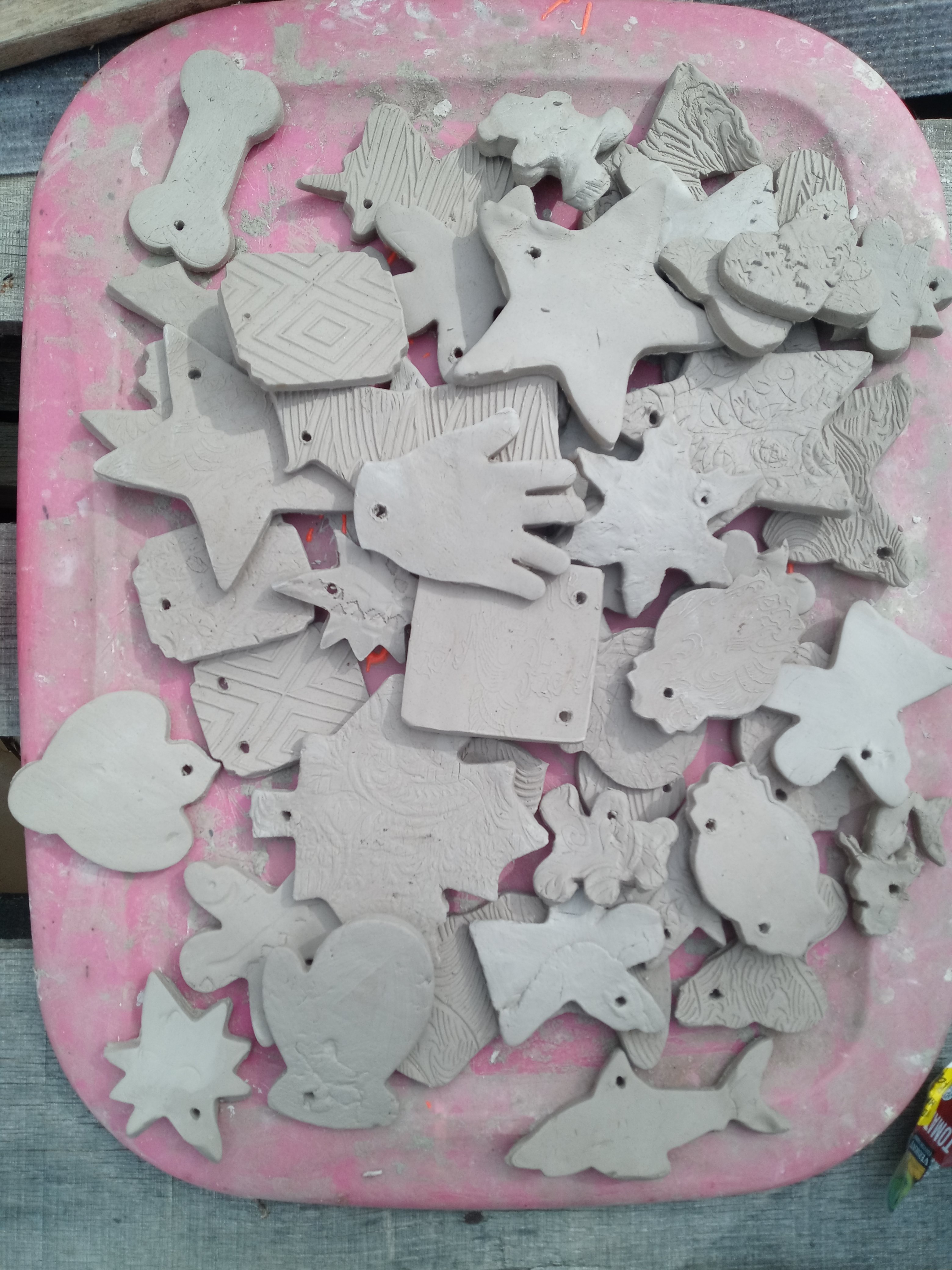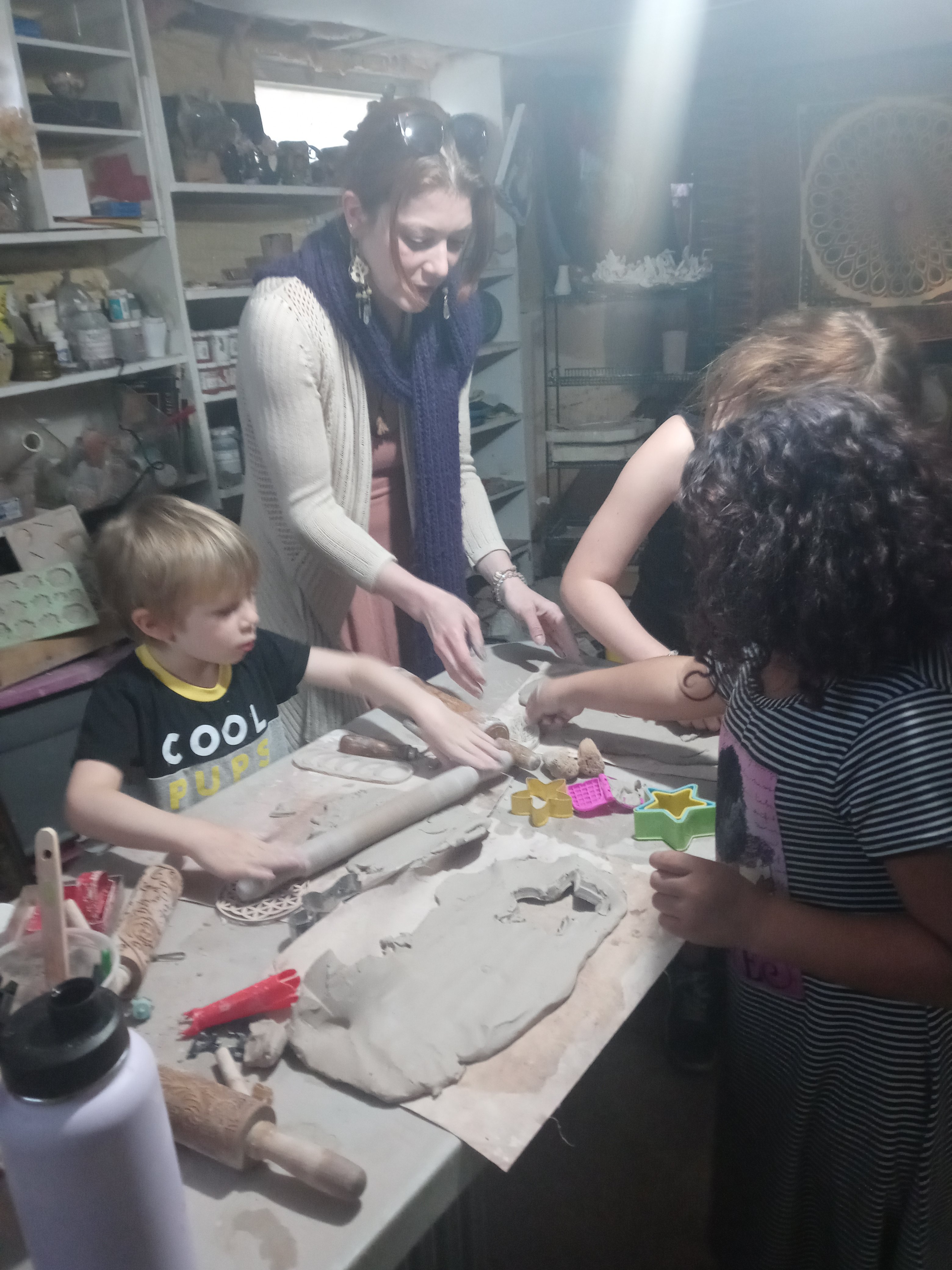 We are able to take on volunteers of all ages to come help us make ornaments to donate and share. It comes with a basic slab rolling free lesson on getting dirty!!! Kids can take some back to their classrooms to share.