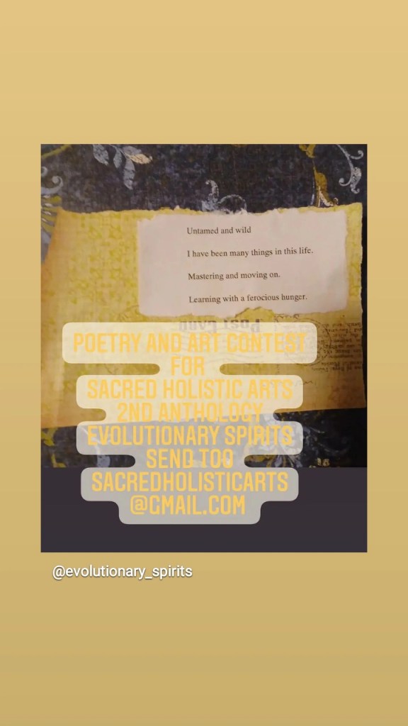 We are holding our second poetry and art contest!!! We are smitten with our first book and what our future holds for the second!!! Send up too 20 pages of poetry, short stories and art to sacredholisticarts@gmail.com by lions gate August 20,2022 (or send an inquiry after that date to see if we are still looking for the right fit) our new anthology is to be titled ‘Evolutionary spirits‘