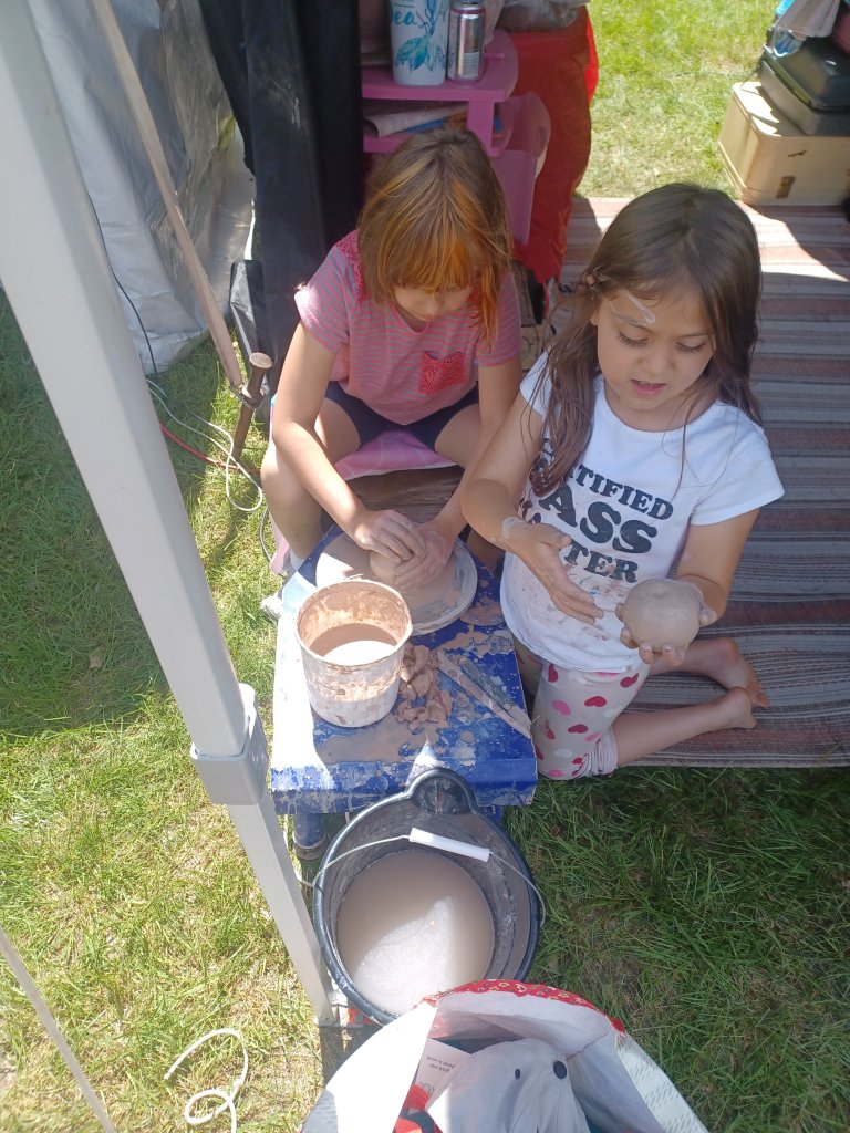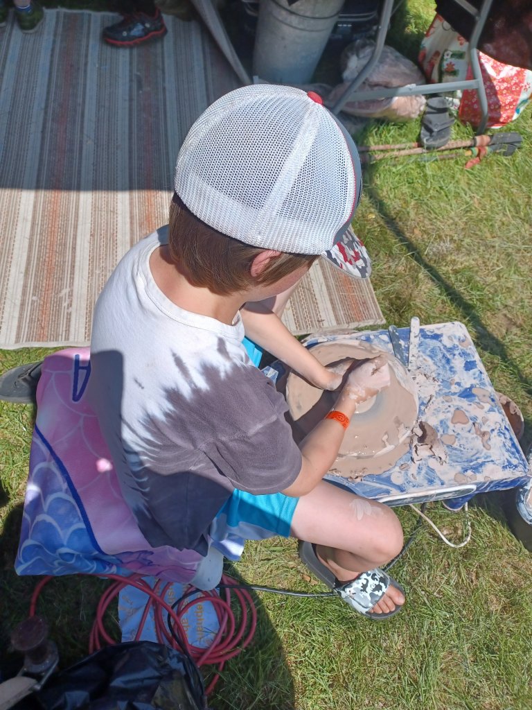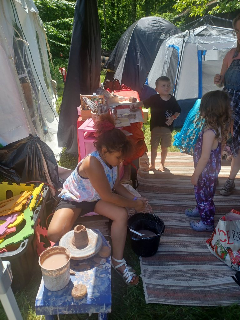 What a long strange time we had at wormtown. Grateful to be in family camping again sharing my arts with the next generation. We have the most brilliant beings of light amongst us. We painted pottery and ceramics, made ornaments, things and stuff. What makes me most proud is to see these kids on the wheel making cylinders!!!! This is so hard!!! But they were patient, had good listening ears, steady hands and determination⦠I am in awe!!! So proud!!!