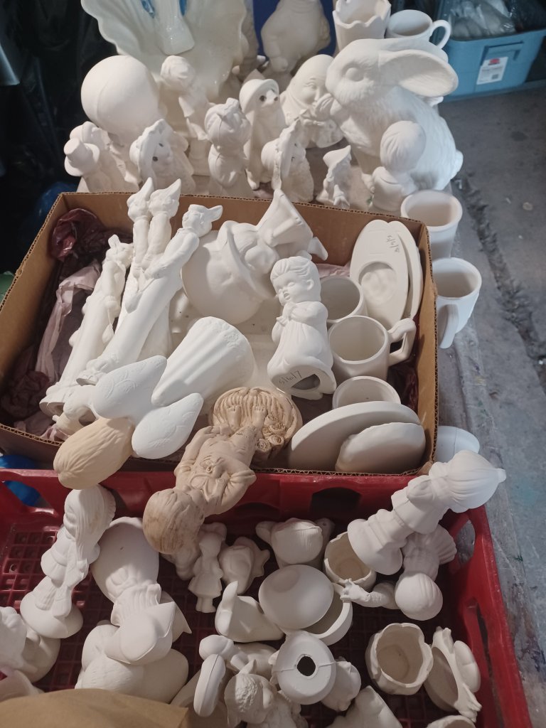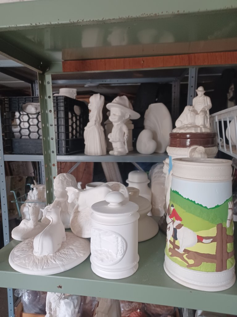 We have way more than pictured here and about 5 more kiln loads to fire and put away. We are so absolutely excited to be able to offer. This wonderful woman was in business for 45 years and gave us an amazing deal. With lots of help. Big huge thanks to Bobbie and Crystal from our board and Roland and Dan…Four and a half truckloads packed ever so carefully and moved into my home studio.